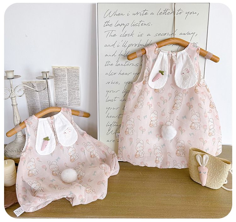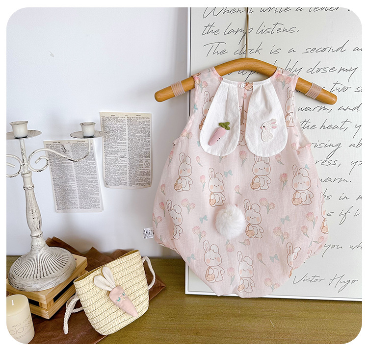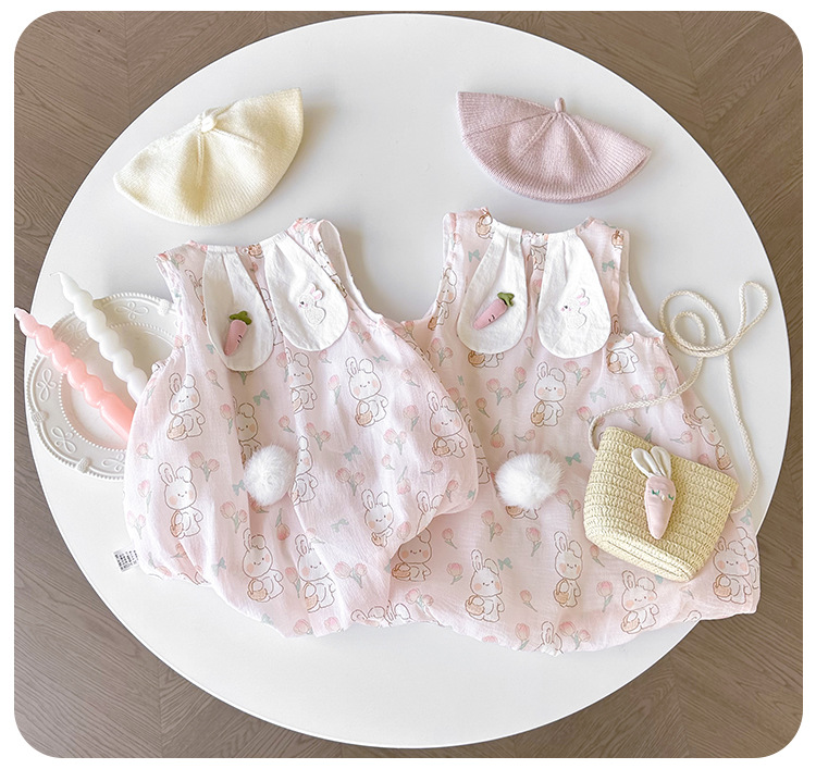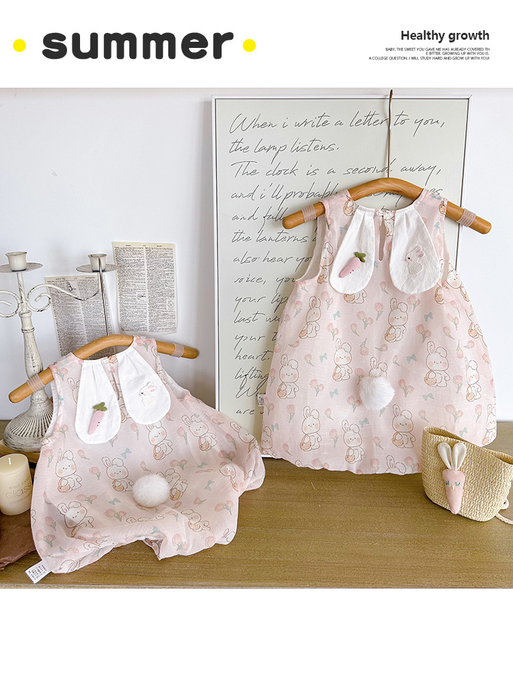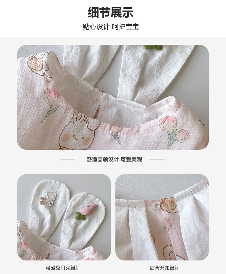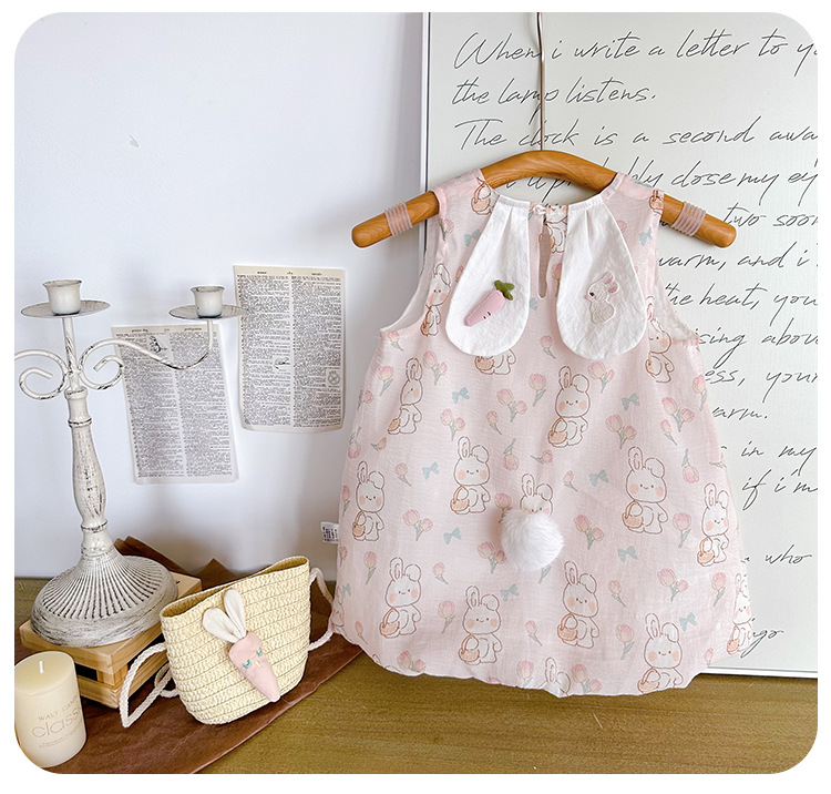 Baby Girl Pink Tulip Bunny Dress Baby Summer Dress Cute Super Cute Rabbit Ears Wrap Fart Coat + Bag