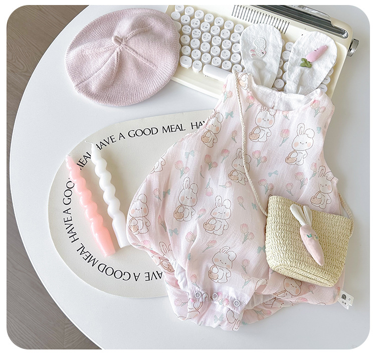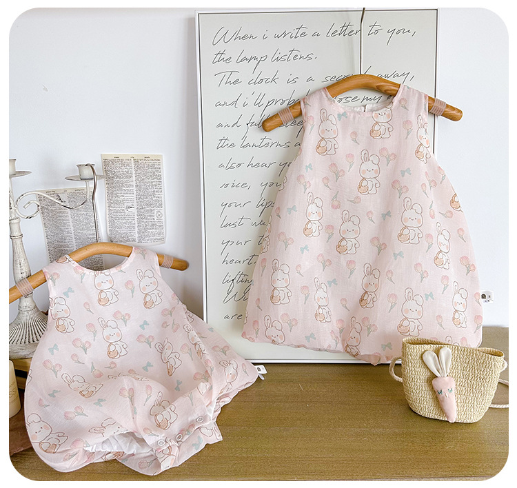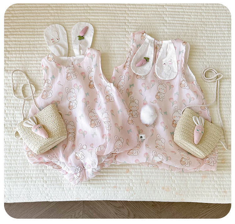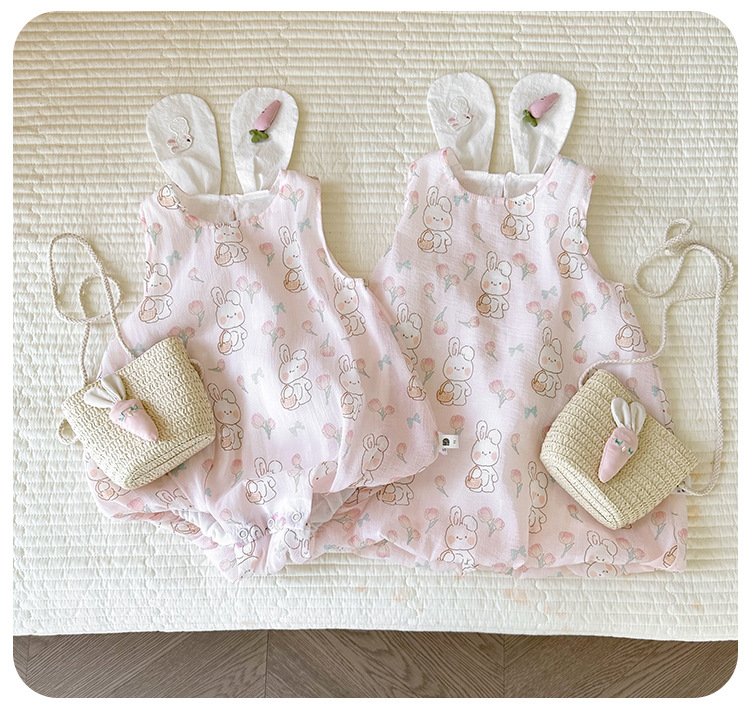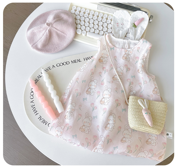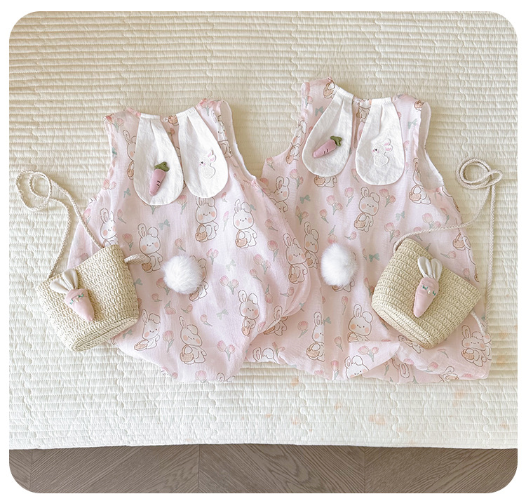 Baby Girl Pink Tulip Bunny Dress Baby Summer Dress Cute Super Cute Rabbit Ears Wrap Fart Coat + Bag