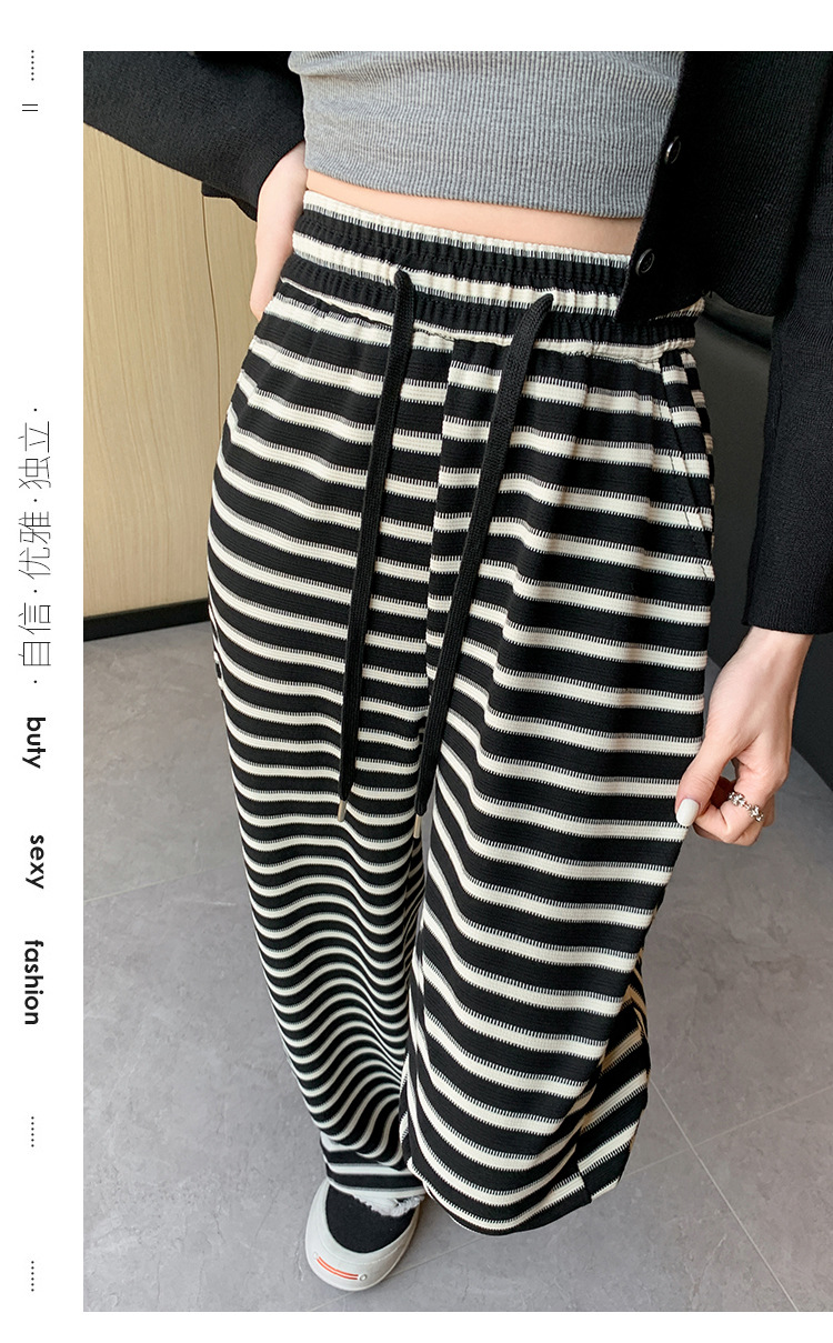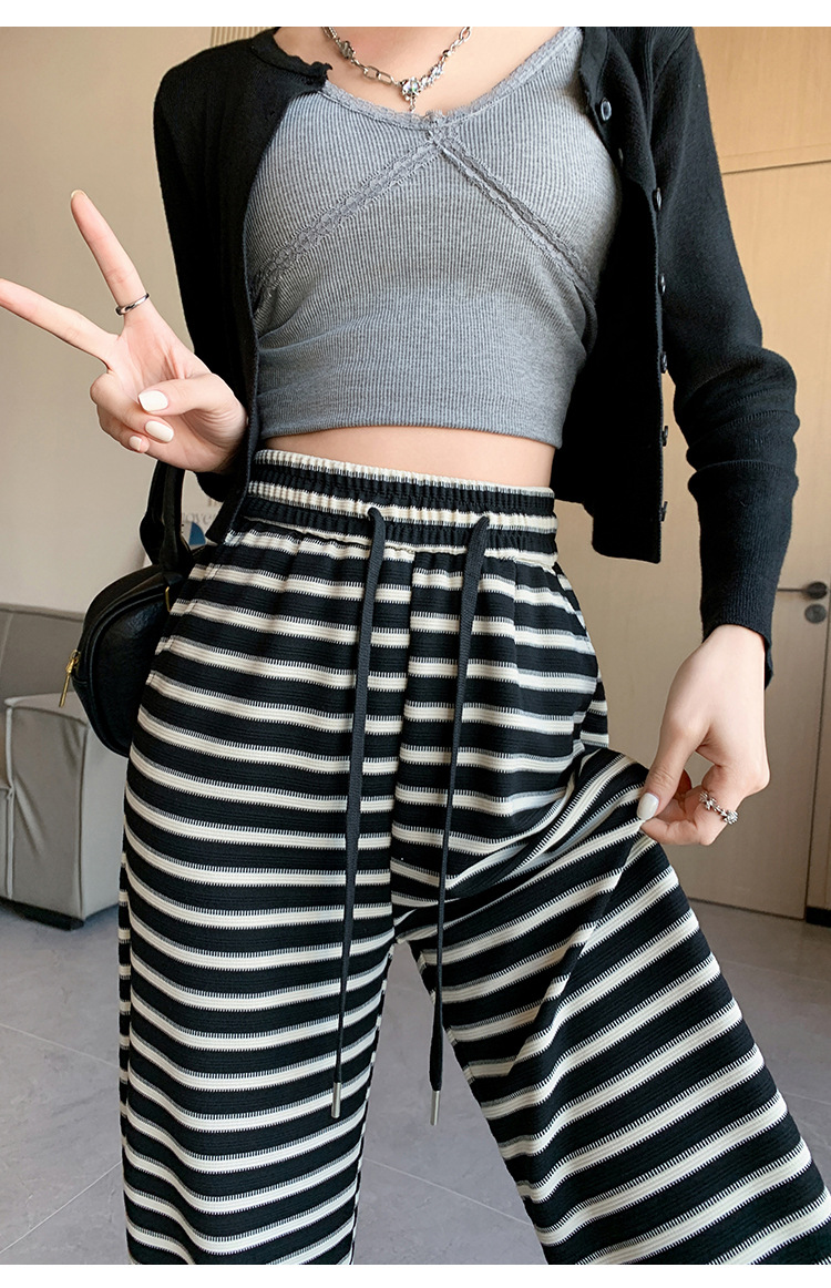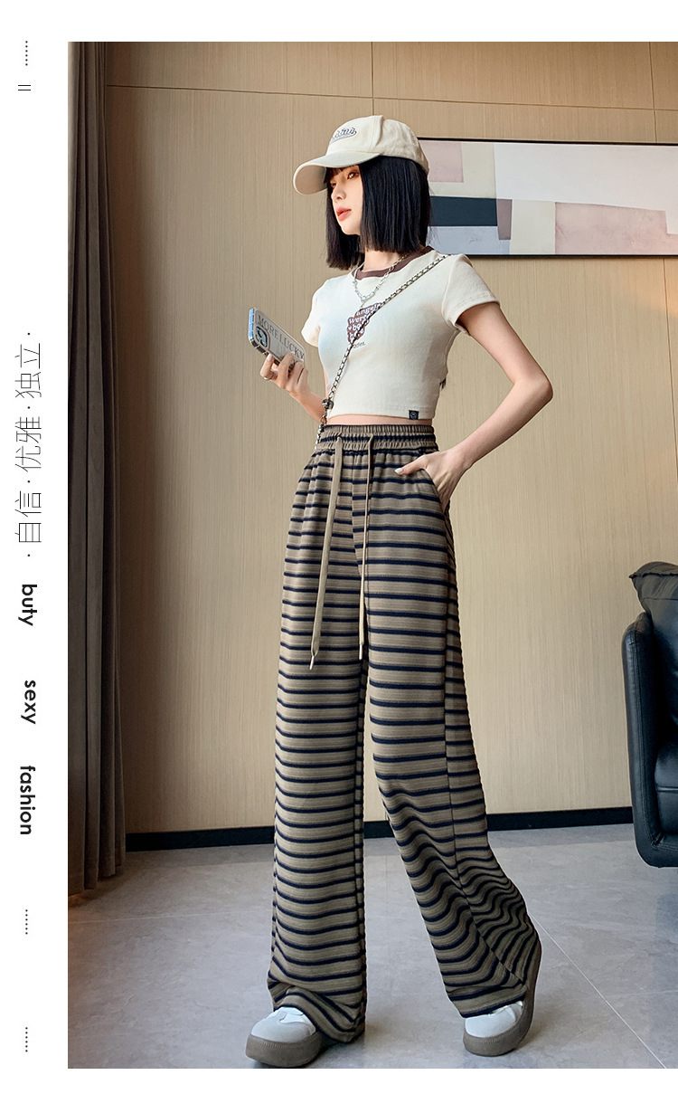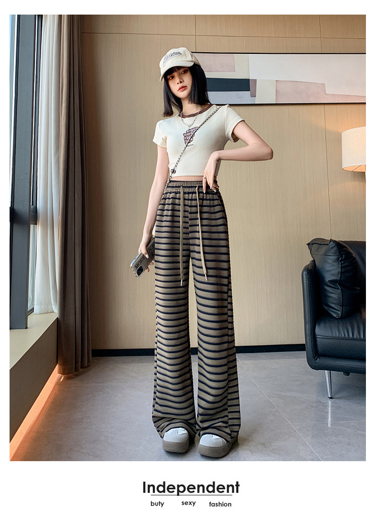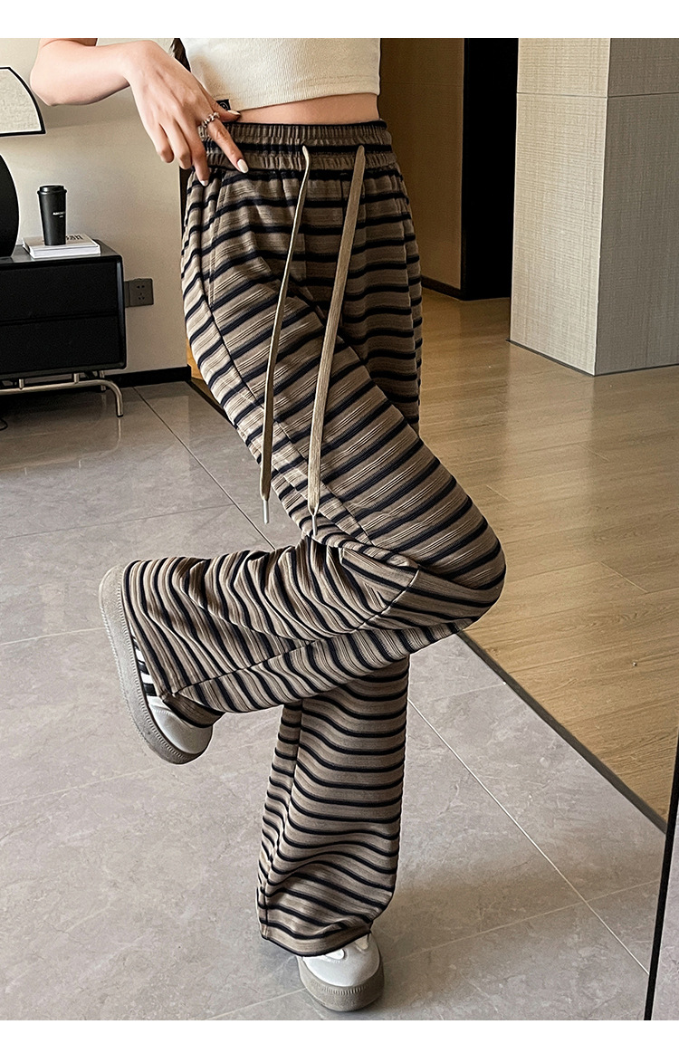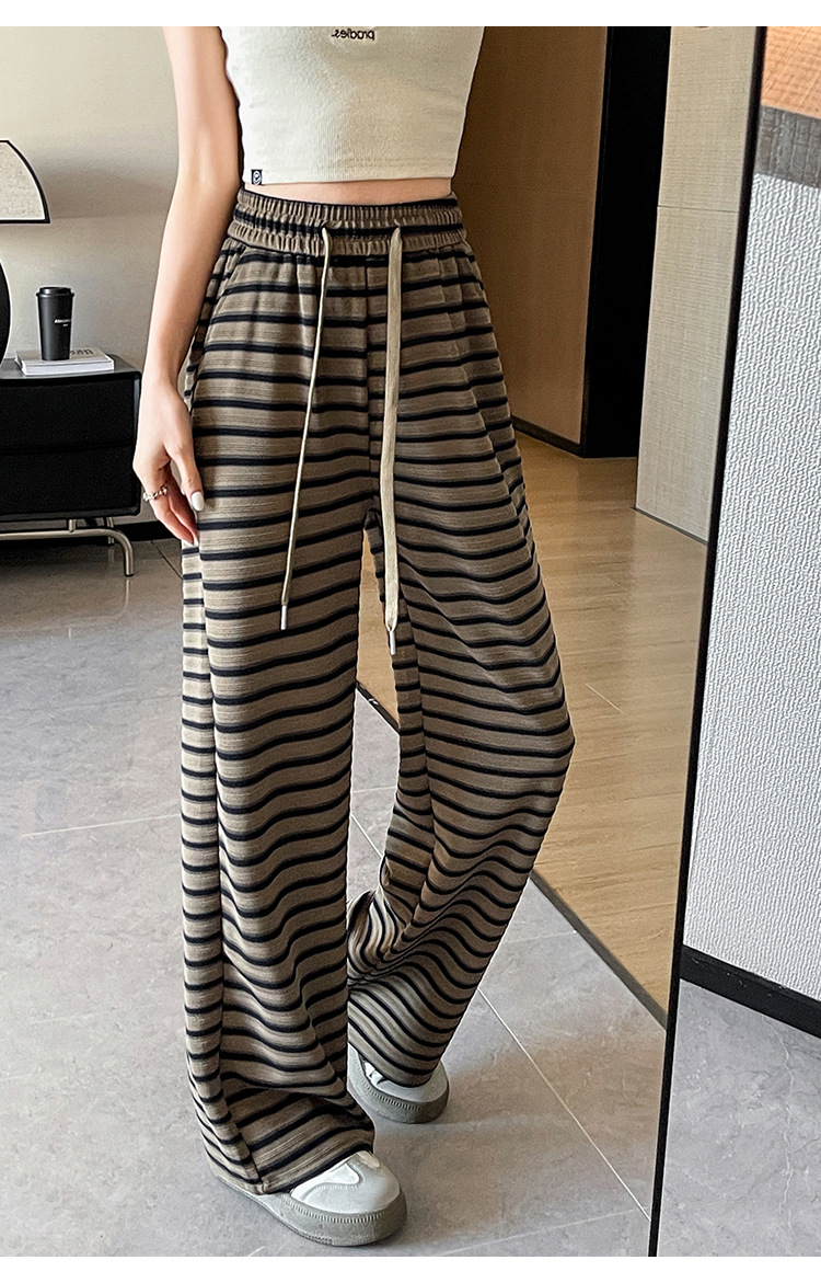 Cross-Border New Striped Wide-Leg Pants Ladies Loose Thin Narrow Straight Leg Color Combination Design Senior Vertical Casual Pants With Dress More Elegant Casual Two Suitable