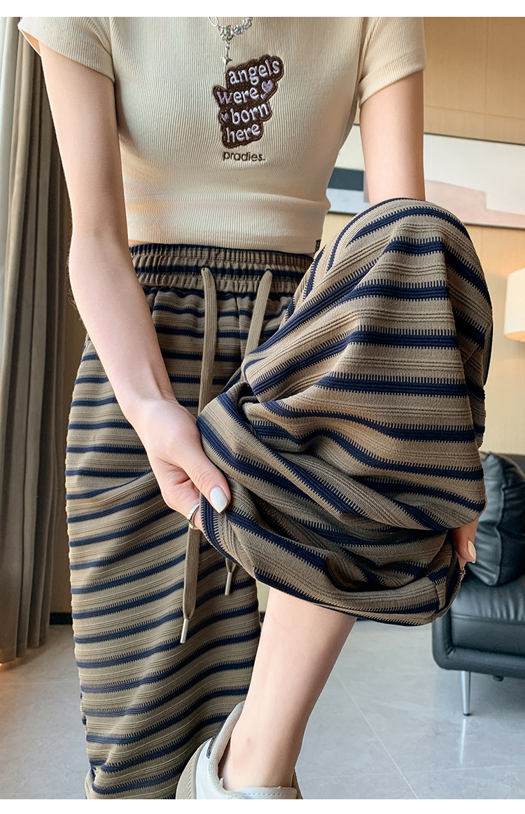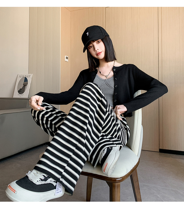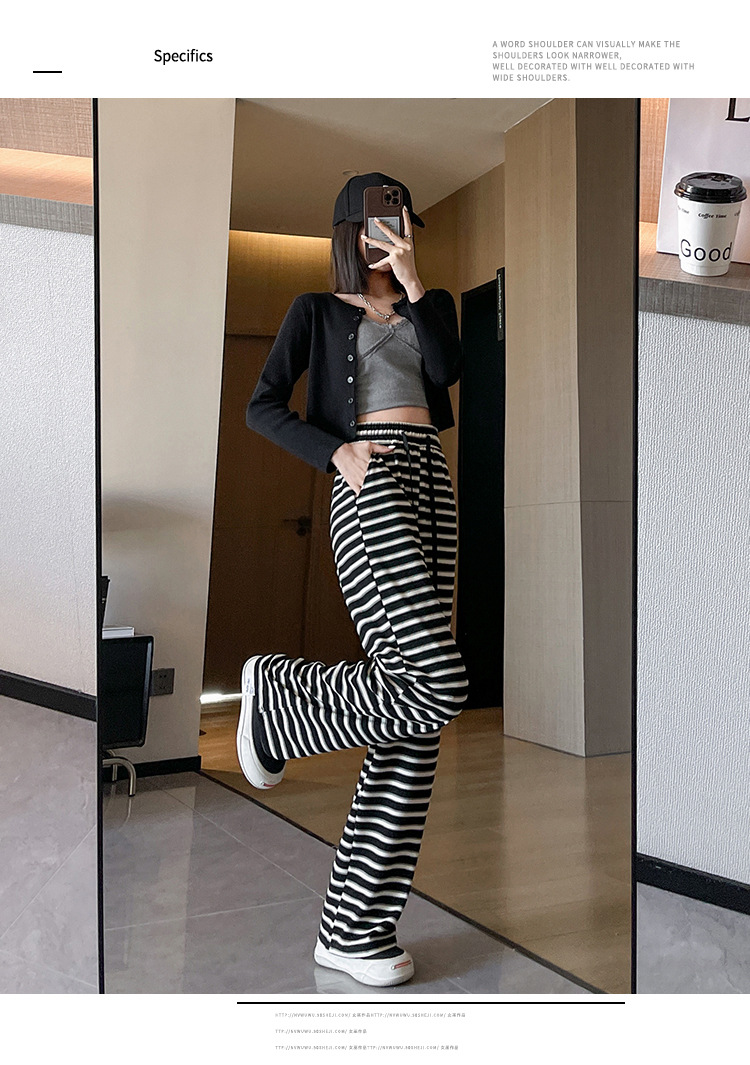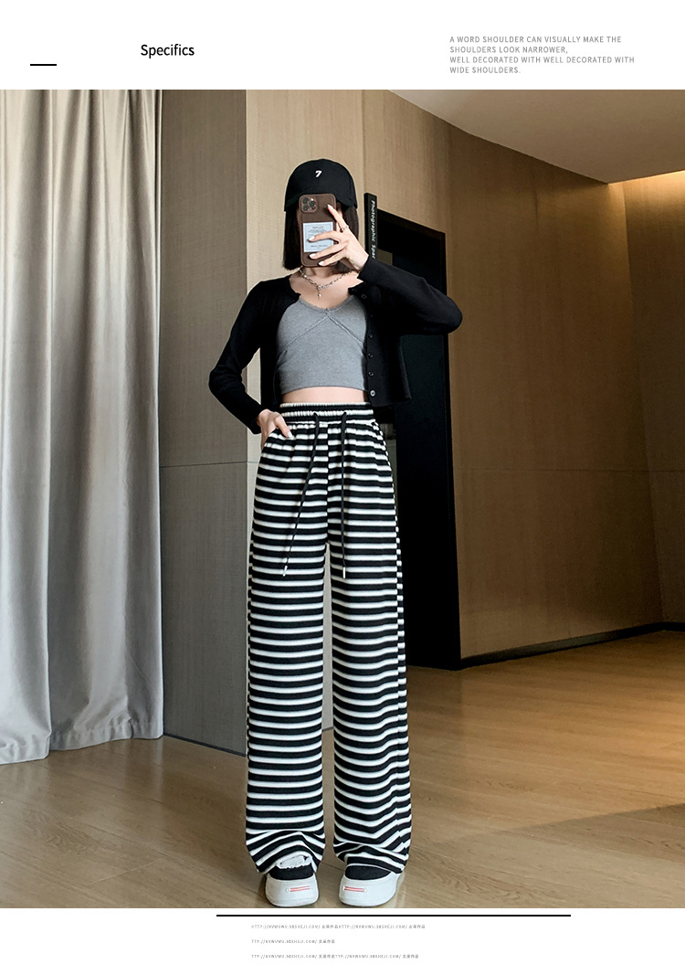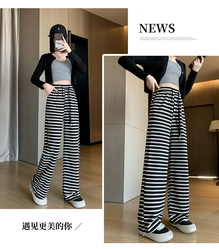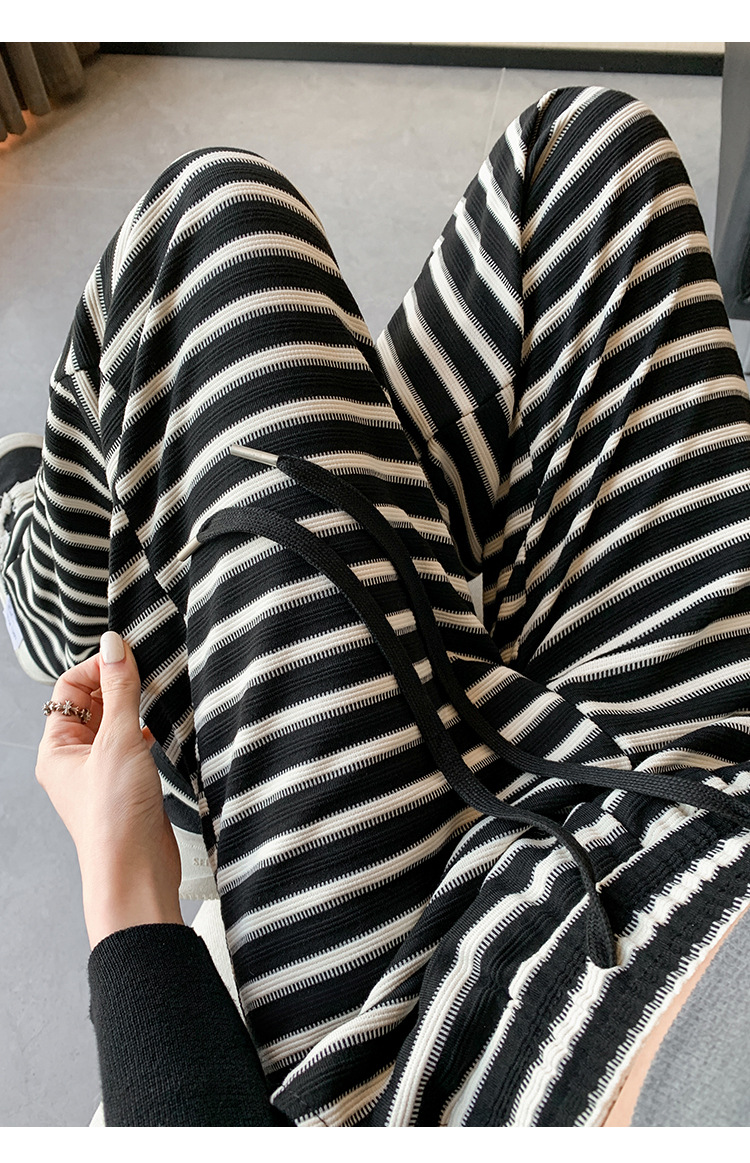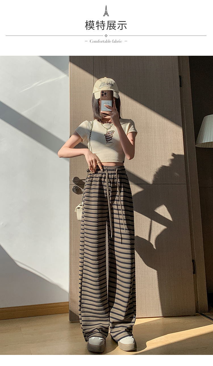 Cross-Border New Striped Wide-Leg Pants Ladies Loose Thin Narrow Straight Leg Color Combination Design Senior Vertical Casual Pants With Dress More Elegant Casual Two Suitable